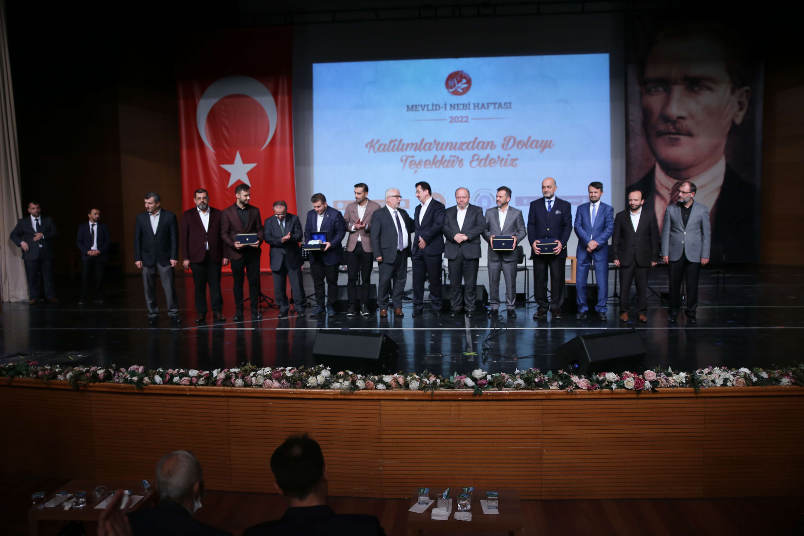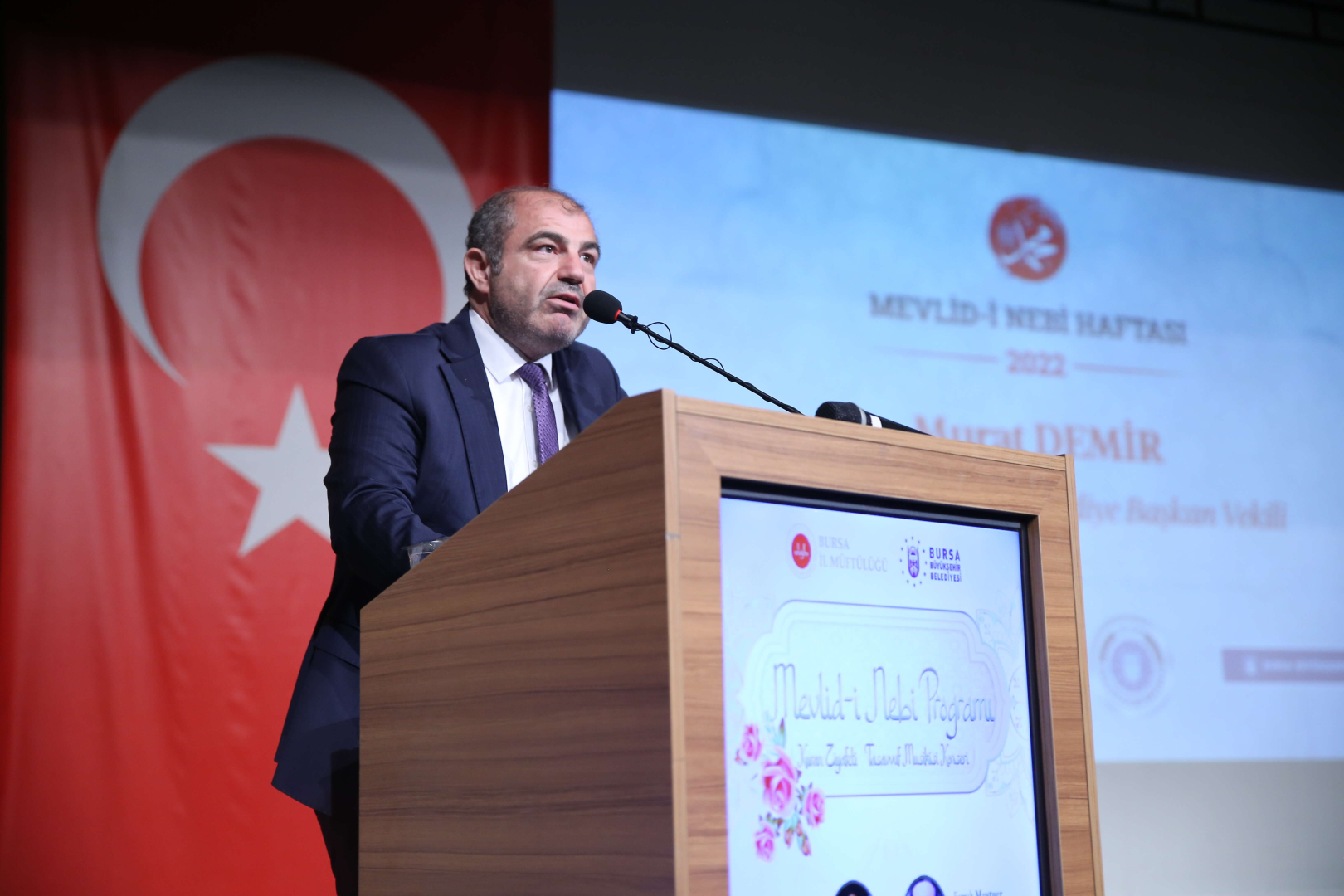 Atatürk Kongre ve Kültür Merkezi’nde düzenlenen Mevlid-i Nebi Haftası etkinliğine Bursa Büyükşehir Belediyesi Başkanvekili Murat Demir ve Bursa İl Müftüsü Yavuz Selim Karabayır katıldı. Kuran tilavetiyle başlayan etkinlikte Ayasofya – i Kebir Cami-i Şerifi Müezzini Mehmet Hadi Duran, Ayasofya – i Kebir Cami-i Şerifi Baş İmamı Ferruh Muştuer, Süleymaniye Cami İmam Hatibi Ekrem Nalbat, Ankara Hacı Bayram-ı Veli İmamı Ahmet Karalı, Yıldırım Aziziye Cami Müezzini Furkan Çınar ve Orhaneli Çınarcık Cami İmamı Ramazan Aydemir, davetlilere kuran ziyareti çektirdi.