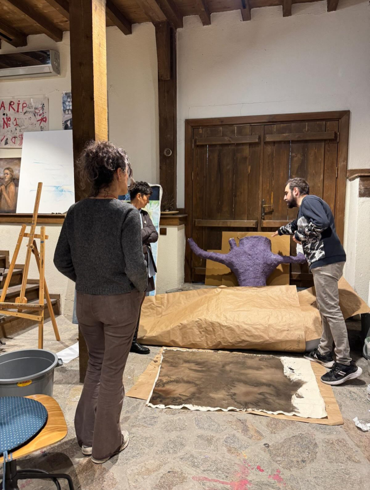Program kapsamında Misi’de konaklayan ve üretimlerini burada sürdüren genç sanatçılarla bir araya gelen Bingöl, atölye ziyaretleri gerçekleştirdi. Ziyaret sırasında genç sanatçıların devam eden projelerini inceleyen Bingöl, kendi sanat pratiğinden örnekler vererek üretim süreçlerine dair tecrübelerini paylaştı.