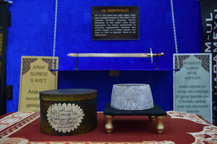 Yıldırım Belediyesi, geçmişten günümüze Kabe örtüleri, Sakal-ı Şerif, Kadem-i Şerif ve kutsal emanetlerden oluşan Hadimü’l Haremeyn Kutsal Emanetler Sergisi ziyarete açıldı. Türkiye’nin önde gelen mukaddes emanet koleksiyoncularından Erol Güzel’in özel koleksiyonuna ait eserlerin sergilendiği etkinlik, vatandaşlardan büyük ilgi görüyor. Barış Manço Kültür Merkezi Erguvan Salonu’nda izlenime sunulan sergi, 20 Mart tarihine kadar 14.00- 22.30 saatleri arasında ziyaret edilebilecek.