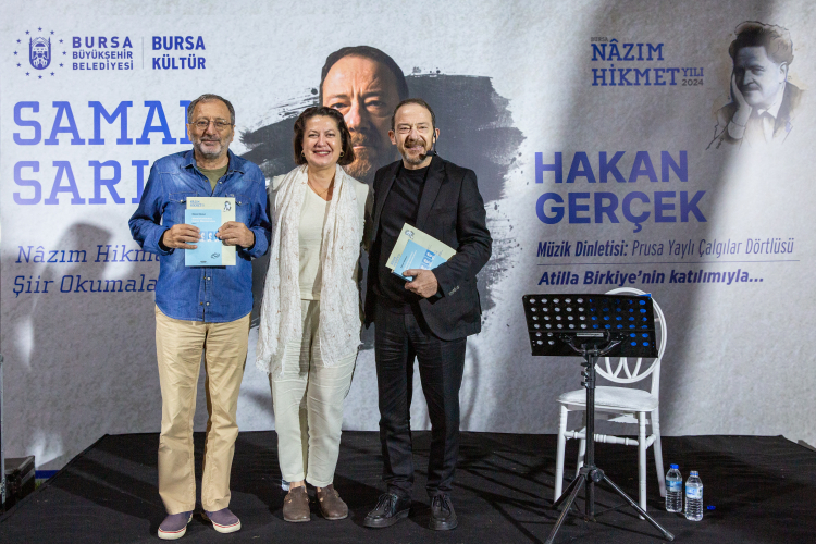 Bursa Büyükşehir Belediyesi tarafından ‘2024 Bursa Nâzım Hikmet Yılı’ etkinlikleri kapsamında hazırlanan ‘Saman Sarısı-Nâzım Hikmet Şiir Okumaları Programı’, sanatseverlere şiir ve müzik dolu bir gece yaşattı.