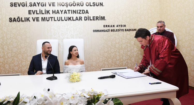 Osmangazi Belediye Başkanı Erkan Aydın, 14 Şubat Sevgililer Günü’nde nikah kıydıracak çifte sürpriz yaparak nikahlarını kıydı.