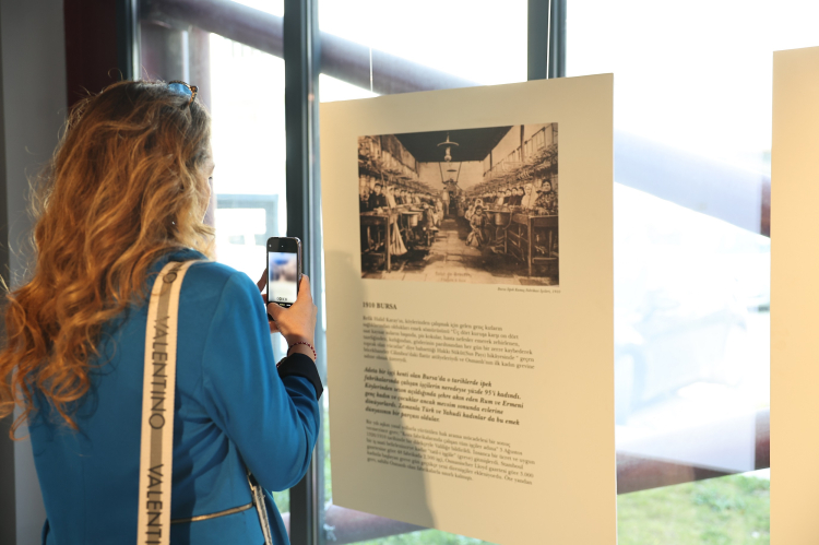 Sergi, 1910 yılında Kopenhag’da düzenlenen Uluslararası Emekçi Kadınlar Konferansı’nda Clara Zetkin ve arkadaşlarının Dünya Kadınlar Günü fikrini ortaya attığı dönemde, Bursa’da ipek işçisi kadınların grevde olduğu gerçeğini hatırlatarak, kadın emeğinin tarihsel mücadelesine dikkat çekiyor.