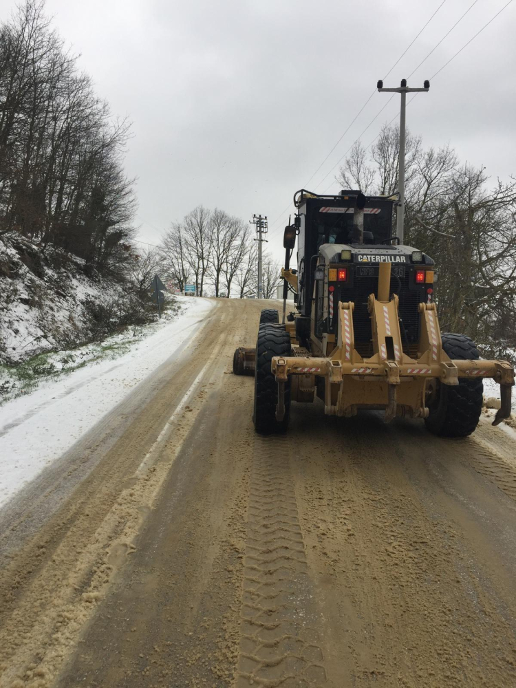 Yolların açık kalması için hem kar küreme, hem de tuzlama çalışmaları aralıksız sürdürülüyor. Ekipler, 10 iş makinesi, 2 bıçaklı tuzlama kamyonu ve 8 normal tuz kamyonu ile kar yağışının hayatı olumsuz etkilememesi için 24 saat aralıksız çalışıyor.