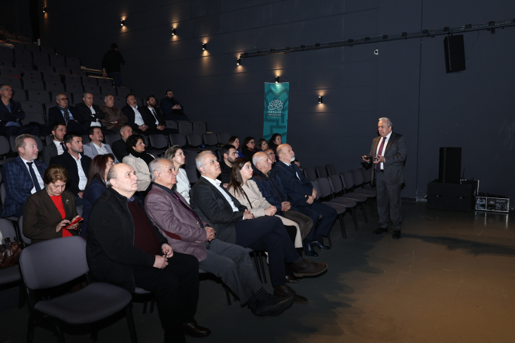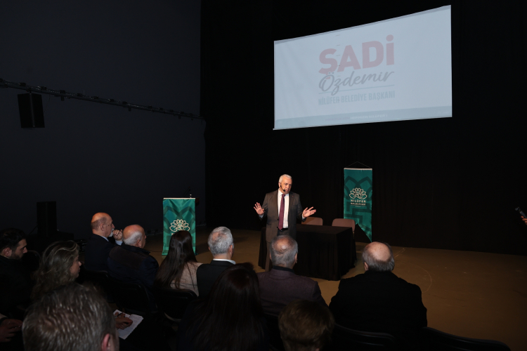Podyum Sanat Mahal’de bir araya gelen Başkan Şadi Özdemir, Nilüfer Belediyesi’nin çalışmalarını ve projelerini anlatan bir sunum gerçekleştirdi.