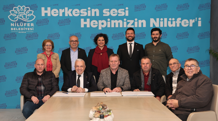 Konuşmaların ardından Nilüfer Belediye Başkanı Şadi Özdemir ile Nilüfer Ziraat Odası Başkanı Şenol Aybey, Başkanvekili Fikret Balcı ve Yönetim Kurulu Üyesi Semih Karayel ortak hizmet protokolüne imza attı.