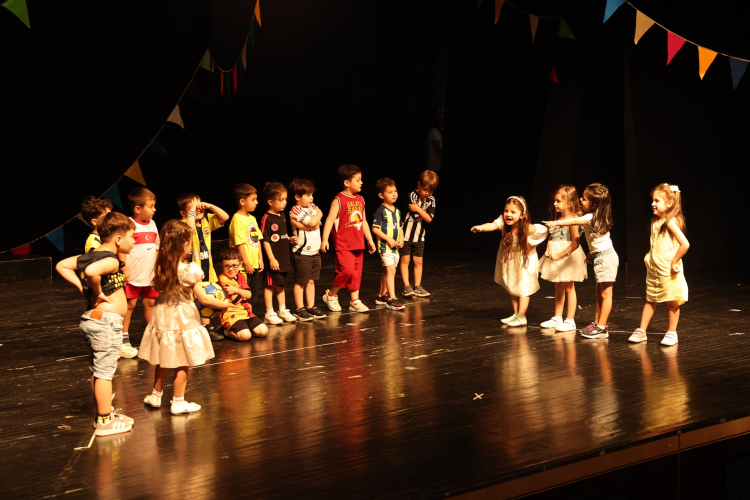 Yıl boyunca drama atölyelerine katılan 5-6 yaş grubundaki öğrenciler, öğretmenlerinin özenle hazırladığı zengin içerikli oyunları sahneledi. Tarihten günümüze, masallardan gerçek hikayelere kadar uzanan geniş repertuvarla hazırlanan gösterilerde, her iki kreşten onlarca çocuk sahne deneyimi yaşadı.