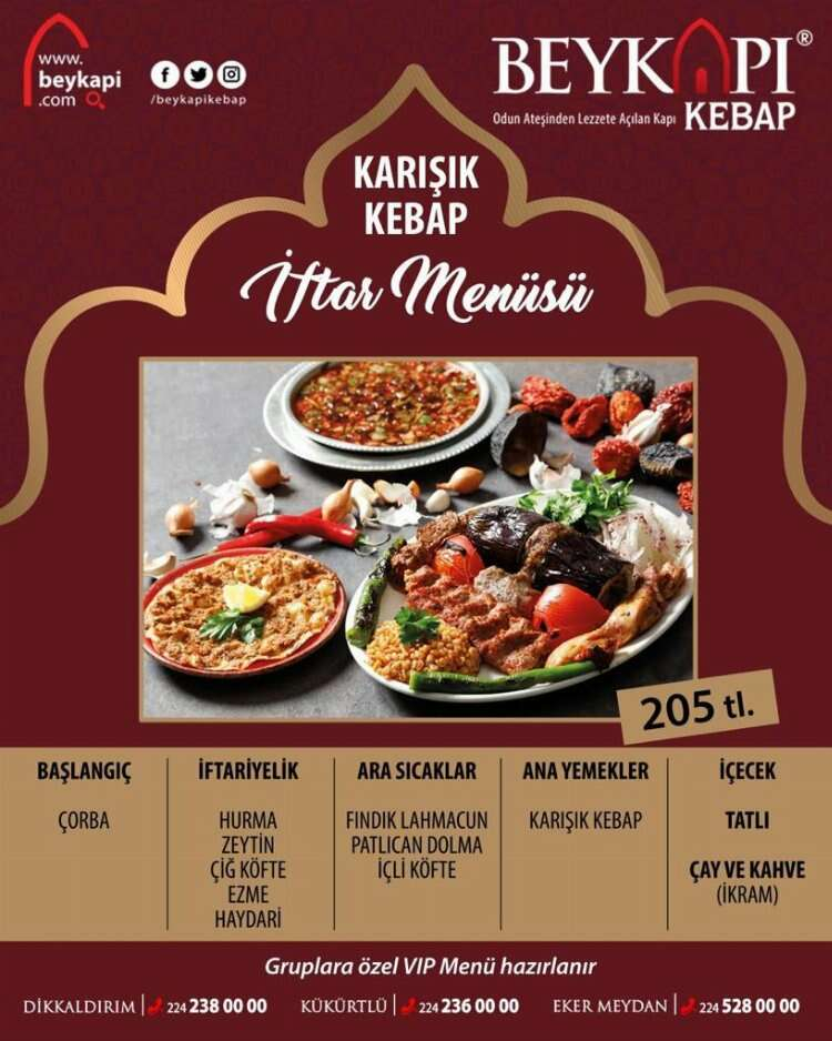 Asırlar boyunca damak zevkinin en güzel örneklerinin oluştuğu zengin bir mutfakta leziz yemekleri Bursalılar ile buluşturan Beykapı Kebap güveni en büyük kazanç olarak görüyor. Beykapı Kebap sahibi Mehmet Ramat, asırlar boyunca damak zevkinin en güzel örneklerinin oluştuğu zengin bir mutfağı Bursalılarla buluşturduklarını söyledi.