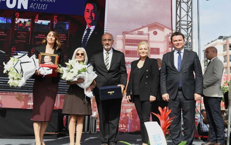 Başkan Aydın konuşmasının sonunda Azak ailesine ve Ayça Azak Gündüz Bakım Evi ve Kreşi Eğitim Danışmanı Derya Şirin’e teşekkür plaketi ve çiçek takdim etti.