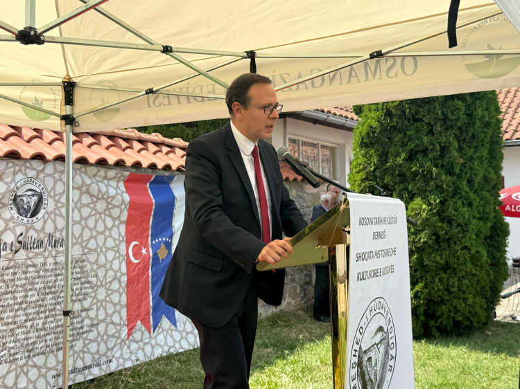 Sultan 1.Murat Hüdavendigar, adaleti ve fedakârlığıyla sadece bir hükümdar değil, aynı zamanda ortak değerlerimizin simgesi olduğunu söyleyen Türkiye Cumhuriyeti Priştine Büyükelçisi Sabri Tunç Angılı “Kosova topraklarında şehit düşen Osmanlı Padişahı I. Murad Hüdavendigar’ı, vefatının üzerinden 636 yıl geçmesine rağmen hâlâ rahmet ve minnetle anıyoruz. Kosova Savaşı, Balkanlar’ın kaderini belirleyen önemli bir dönüm noktasıdır. Bu savaşla bölgede uzun süreli bir barış ve çok kültürlü bir yaşamın temelleri atılmıştır. Sultan 1. Murad’ın burada şehit düşmesi, bu coğrafya için derin bir anlam taşır. Hüdavendigar, adaleti ve fedakârlığıyla sadece bir hükümdar değil, aynı zamanda ortak değerlerimizin simgesidir. 636 yıldır hâlâ anılıyor olması, onun mirasının halkların hafızasında ne denli güçlü yer tuttuğunu gösterir. Meşhed-i Hüdavendigar, bir anıttan öte, tarihî ve kültürel bağlarımızın yaşayan bir hatırasıdır” diye konuştu