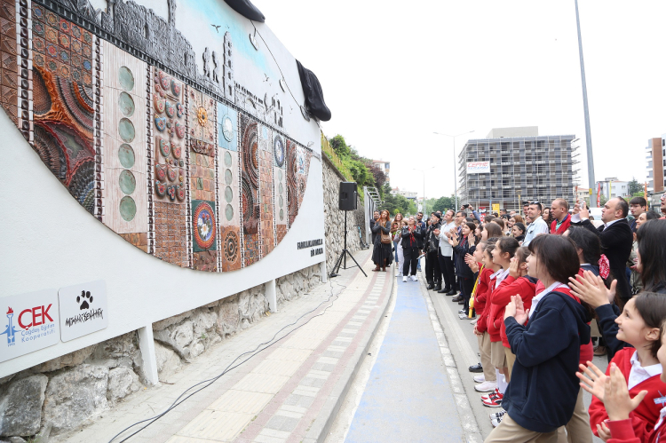Açılışa Nilüfer Belediye Başkan Yardımcıları Okan Şahin, Şirin Arıbaş, Bukle Erman ve panonun oluşturulmasına katkı koyan öğretmenler ve öğrenciler katıldı. Okan Şahin, son seramik parçayı da koyarak panoyu tamamladı.