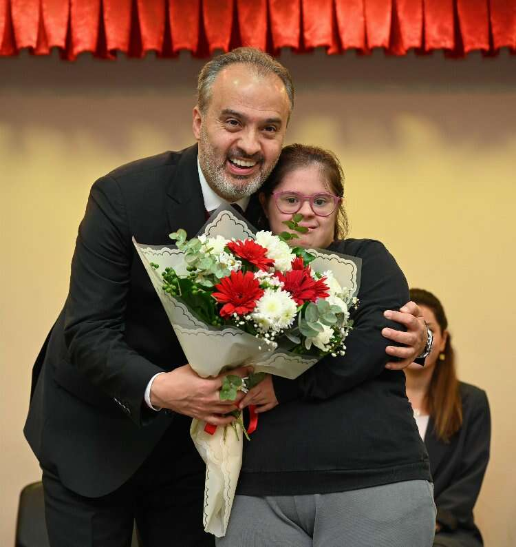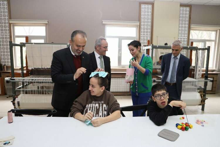 Yoğun temposuna rağmen, fırsat buldukça eğitim kurumlarını ziyaret edip, gençlerle tecrübelerini paylaşan Bursa Büyükşehir Belediye Başkanı Alinur Aktaş, 3 Aralık Dünya Engelliler Günü etkinlikleri kapsamında bu kez Mehmet Torun Aziz Torun Özel Eğitim Uygulama Okulu’nda eğitim gören özel öğrencilerle buluştu. İl Milli Eğitim Müdürü Dr. Ahmet Alireisoğlu ve Osmangazi İlçe Milli Eğitim Müdürü Metin Sezer ve Okul Müdürü Mesut Güzel ile birlikte dokuma, el sanatları ve seramik atölyelerinde çalışan özel öğrencileri ziyaret eden Başkan Aktaş, öğrencilerle sohbet edip, onlara başarılar diledi.