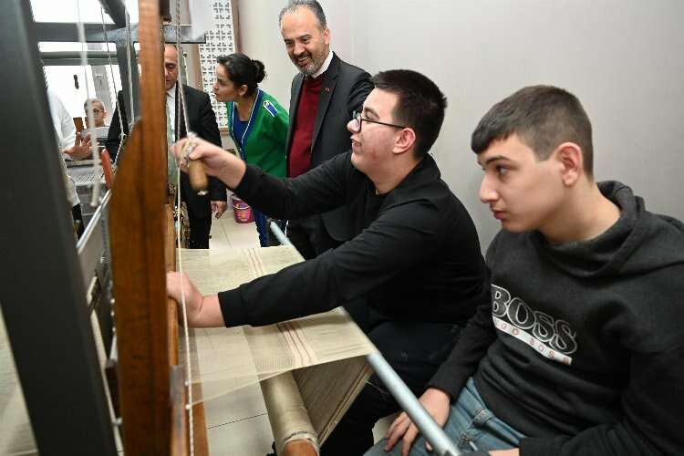 Bursa Büyükşehir Belediye Başkanı Alinur Aktaş, Mehmet Torun Aziz Torun Özel Eğitim Uygulama Okulu’nda eğitim gören özel öğrencilerle bir araya geldi. Okulun dokuma, el sanatları ve seramik atölyelerini gezen Başkan Aktaş, üretimde yeteneklerini gösteren özel öğrencilerle sohbet etti.