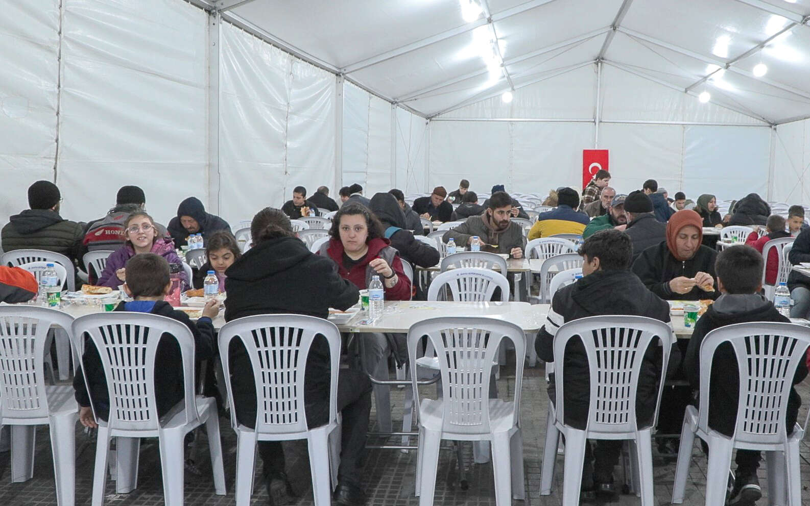 Asrın felaketinde büyük yıkıma uğrayan Hatay’da, yardımların dağıtımı, geçici yaşam alanları oluşturulması ve seyyar tuvaletlerin kurulumuyla görevlendirilen BursaBüyükşehir Belediyesi, Ramazan bereketini Hatay’da da yaşatıyor. Türkiye genelinden gelen yardımları her gün düzenli olarak Hatay’da afetzedelere ulaştıran Bursa Büyükşehir Belediyesi, Ramazan’ın ilk gününde 3 ayrı noktada toplam 2 bin kişiye iftar ve sahur yemeği verdi. İftar ve sahur planlaması Ramazan boyunca devam edecek.