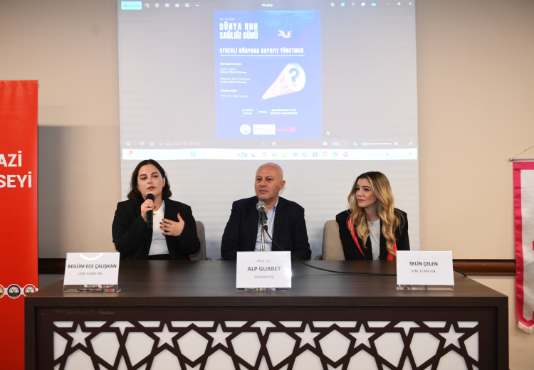 Dünyada stres altında yaşadıklarını söyleyen Prof. Dr. Alp Gurbet, “Yaşadığımız stres kaygıya ve endişeye dönüşebiliyor. Çok kaygılı ve stresliysek bunları nasıl yönetebiliriz, hakkında Uzman Klinik Psikolog arkadaşlarımız katılıcılara bilgiler verdi” diye konuştu.