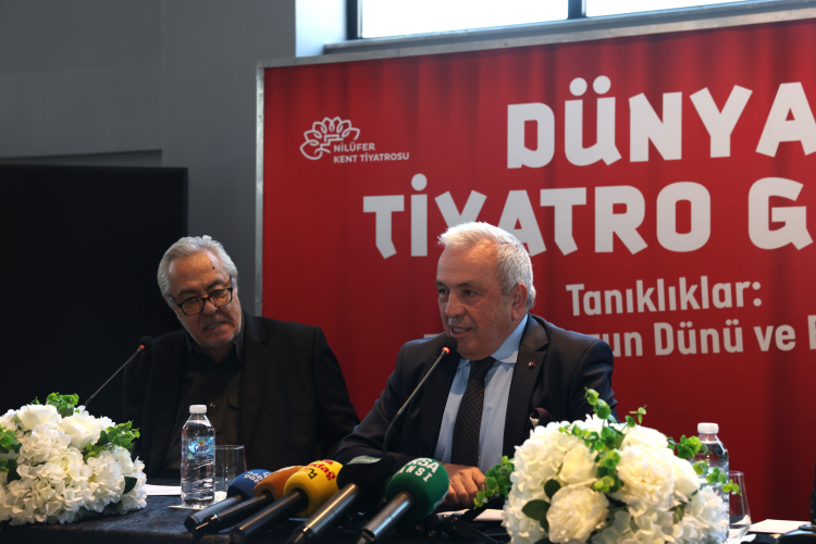 Nilüfer Belediyesi’nin Dünya Tiyatro Günü kapsamında düzenlediği “Tanıklıklar: Tiyatromuzun Dünü ve Bugünü” söyleşisi, Pancar Deposu’nda gerçekleştirildi. Nilüfer Kent Tiyatrosu yöneticisi Kazım Güçlü’nün moderatörlüğünü yaptığı söyleşide usta tiyatro sanatçısı ve yönetmen Rutkay Aziz ile Nilüfer Belediye Başkanı Şadi Özdemir yer aldı. Söyleşinin başında Kazım Güçlü, Süreyya Karacabey’in alternatif Dünya Tiyatro Günü Bildirisi’ni okudu.