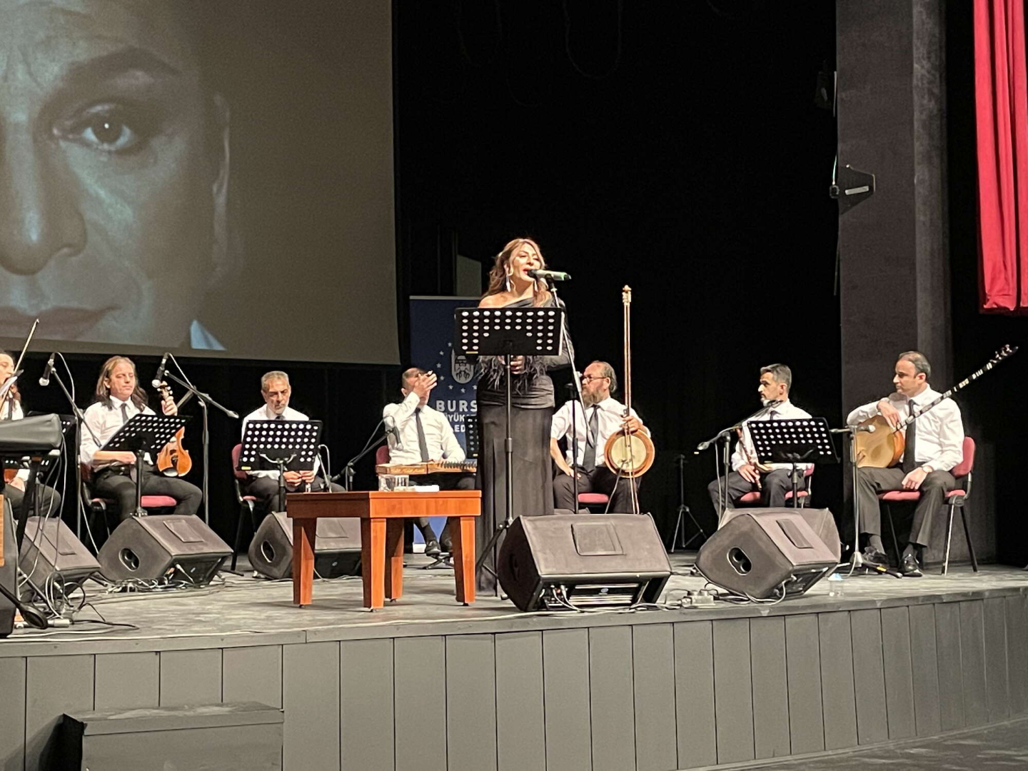 Tayyare Kültür Merkezi’nde düzenlenen konsere Bursalı sanatseverler yoğun ilgi gösterdi. Konuk sanatçı olarak sahne alan Duygu Güleç, Sanat Güneşi Zeki Müren’in şarkılarını seslendirirken, Bursalıları nostalji yolculuğuna çıkardı.