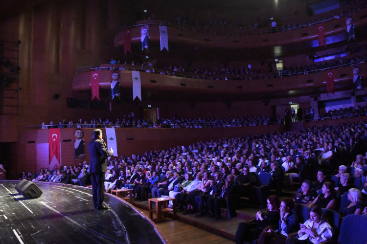 Gecenin sonunda Başkan Aydın, Sanatçılar Yıldırım Bekçi ve Melihat Gülses ile Zeki Müren Güzel Sanatlar Lisesi öğrencilerine teşekkür çiçeği verdi.