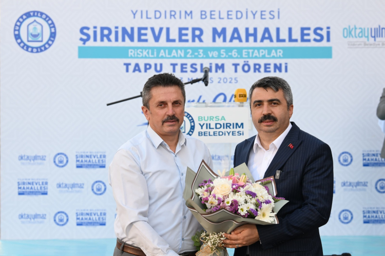 Yıldırım Belediyesi, ilçede uzun yıllardır çözülemeyen imar sorunlarını tek tek ortadan kaldırmaya devam ediyor. Bugüne kadar riskli alan ve riskli alan dışı olmak üzere toplamda 2 bin 50 hak sahibine tapularının teslim edildiği Şirinevler Mahallesi’nde, bin 530 hak sahibi daha tapusuna kavuştu. Şirinevler Mahallesi Riskli Alan 2.-3. ve 5.-6. Etapları Tapu Teslim Töreni’nde konuşan Yıldırım Belediye Başkanı Oktay Yılmaz, “Göreve geldiğimiz günden bu yana ilçemizin üçte birini etkileyen imar problemini çözüme kavuşturduk. Bugün burada bin 530 hak sahibimize daha tapularını teslim ederek bu sorunu tamamen ortadan kaldırmış bulunuyoruz” dedi.