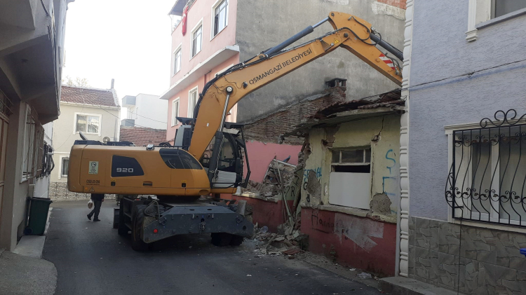 Osmangazi Belediyesi, Koğukçınar Mahallesi’nde can ve mal güvenliği açısından tehlike oluşturan metruk binayı yıktı.