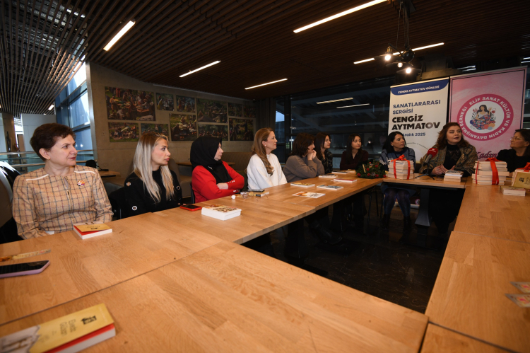 Cengiz Aytmatov’un Türk dünyası için edebiyatta önemli bir yere sahip olduğuna işaret eden Uludağ Üniversitesi Fen Edebiyat Fakültesi Türk Dili ve Edebiyatı Bölümü Öğretim Görevlisi Ayşe Energin, “Sanatlararası Sergisi’nde Cengiz Aytmatov dedik, bozkırdan dünyaya uzanan el, bozkırın sesi, bozkırın bilgesi dedik. Tam da buradan hareketle sergimizin kapanışını bir kolektif okumayla gerçekleştirdik. Burada kitapsever dostlarımızla birlikte Aytmatov’un ‘Elveda Gülsarı’ adlı kitabını inceledik.” diye konuştu.
