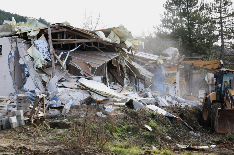 Yıkım çalışmaları sırasında jandarma ve zabıta ekipleri çevrede geniş güvenlik önlemleri alırken, tedbir amaçlı sağlık ekipleri de alanda hazır bulundu.