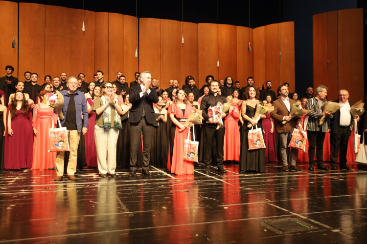 Nâzım Hikmet’in şiirlerinin çok sesli müziğin zenginliğiyle yeniden hayat bulduğu etkinlikte, Şef Zeynep Göknur Yıldız’ın yönetiminde Bursa Çoksesli Korosu, Şef Yiğit Deniz yönetiminde Jazzberry Tunes ve Şef Oylum Dil Bitir yönetiminde BBB Mudanya Çoksesli Koro’su sahne alarak dinleyicilere keyifli bir akşam yaşattı. Gecede, çağdaş Türk müziğinin önemli bestecileri Murat Cem Orhan, Nedim Yıldız, Serdar Yalçın ve Turgay Erdener’in Nâzım Hikmet’in şiirlerinden ilhamla bestelediği eserler seslendirildi. Ayrıca Büyükşehir Belediyesi Şehir Tiyatrosu Genel Sanat Yönetmeni Ali Düşenkalkar da eserlerin arasında okuduğu Nâzım Hikmet mısraları ile şiir ve müzik arasında güçlü bir bağ kurdu. Etkinliğin sonunda Büyükşehir Belediyesi yöneticileri tarafından çiçek takdim edilen sanatçılar, izleyenler tarafından ayakta alkışlandı.