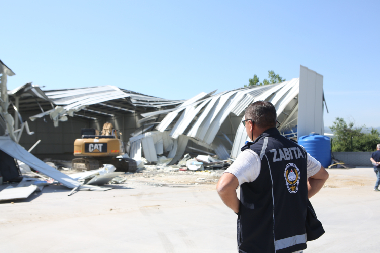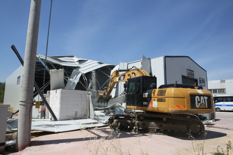 Çevik kuvvet ve zabıta ekiplerinin güvenlik önlemleri çerçevesinde, Yaylacık Mahallesi’nde bin 500 metrekarelik bir depo tamamen yıkılırken, 280 metrekarelik depo da kullanılamaz hale getirildi.