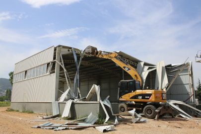 Zabıta ekiplerinin güvenlik önlemleri eşliğinde yürütülen yıkım çalışmaları kapsamında, Yaylacık Mahallesi’nde aynı parsel üzerine inşa edilen 500’er metrekarelik iki kaçak fabrika yerle bir edildi.