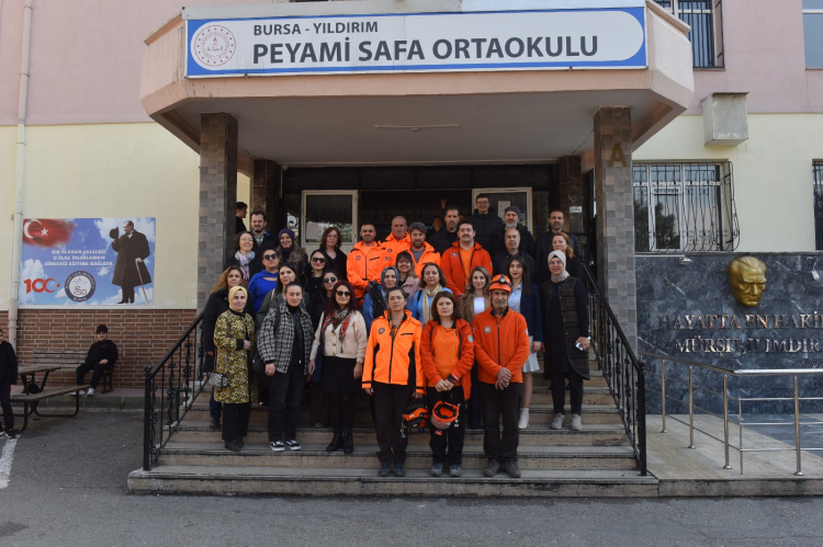 Öğretim yılı başından itibaren 9 okulda yaklaşık 3 bin 450 öğrenci ve öğretmene eğitim veren Afet İşleri Müdürlüğü ekipleri, Peyami Safa Ortaokulu öğrenci ve öğretmenlerine çök-kapan-tutun hareketi, okuldan güvenli tahliye, afet toplanma alanı, deprem anında ve sonrasında doğru hareket etme yöntemleri konularında teorik ve uygulamalı eğitim verdi. Depreme karşı bilinçli ve hazırlıklı olunmasını sağlamak için düzenlenen eğitime öğrenciler yoğun ilgi gösterdi. Eğitimin çok yararlı geçtiğini ifade eden Okul Müdürü Kaan Bayrakçı, Yıldırım Belediyesi ve Başkan Oktay Yılmaz’a teşekkür etti.