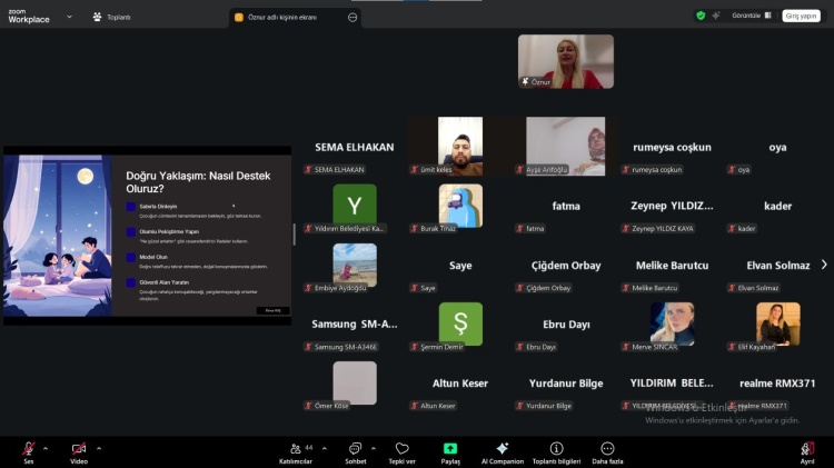 Sosyolog ve Aile Danışmanı Hüseyin Pehlivan ise konuşma bozukluklarının yalnızca dil gelişimiyle sınırlı kalmadığını, çocuklarda özgüven eksikliği, sosyal ortamlardan uzaklaşma ve iletişim kurmada zorlanma gibi psiko-sosyal etkiler oluşturabildiğini dile getirdi. Pehlivan, ailelerin bu süreci mutlaka uzman desteğiyle yürütmesi gerektiğine dikkat çekti. Semineri değerlendiren Yıldırım Belediye Başkanı Oktay Yılmaz, çocukların sağlıklı gelişiminin güçlü bir toplumun temelini oluşturduğunu vurgulayarak, “Pandemiyle birlikte artan teknoloji kullanımı ve azalan yüz yüze iletişim, çocuklarımızın dil ve sosyal gelişimini doğrudan etkiledi. Bu tür çalışmalarla aileleri bilinçlendirmeyi, uzmanlarla velileri bir araya getirerek sürece katkı sunmayı amaçlıyoruz” dedi.