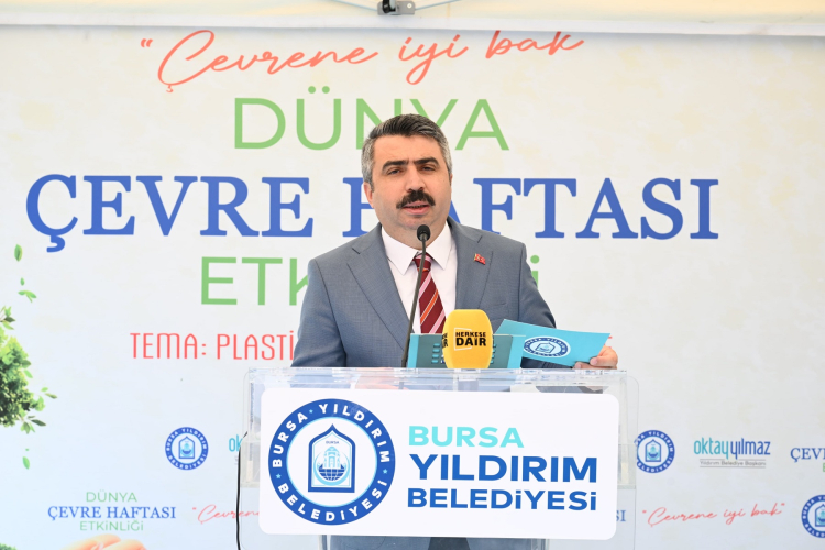 Yıldırım Belediyesi Dünya Çevre Günü kapsamında bir dizi etkinlik düzenledi. Ahmet Taner Kışlalı Meydanı’nda düzenlenen etkinliğe Yıldırım Belediye Başkanı Oktay Yılmaz’ın yanı sıra Yıldırım Kaymakamı Metin Esen, Çevre Şehircilik ve İklim Değişikliği İl Müdürü Hayrettin Eldemir, AK Parti İl Başkan Vekili Kamil Bayramiç, AK Parti İlçe Başkanı İrfan Akkaya, kurum müdürleri, meclis üyeleri, öğretmen ve öğrenciler katıldı.