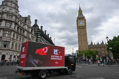 Londra'da Bakanlıklar, devlet kurumları, parlamento ile tarihî ve turistik yapıların bulunduğu bölgelerde dolaşan LED ekranlı araçlar, FETÖ'nün 15 Temmuz darbe girişimini ve Türk halkının buna karşı mücadelesini anlattı.