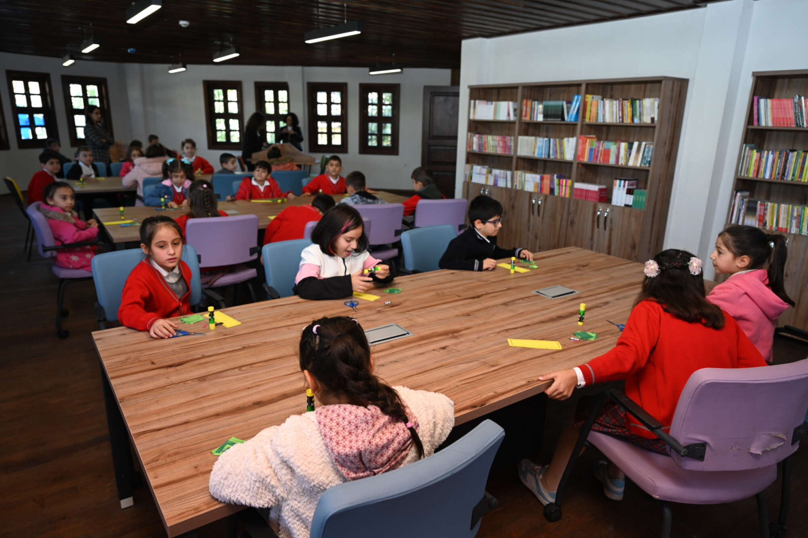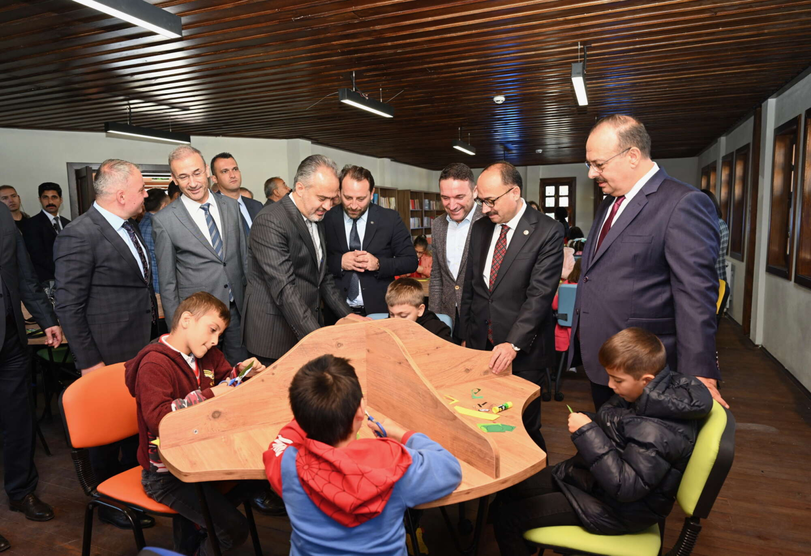 Konuşmaların ardından Başkan Alinur Aktaş ve beraberindekiler, öğrencilerle birlikte açılış kurdelesini keserek kütüphaneyi gezdi.