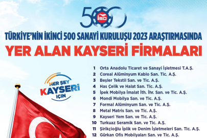 Büyükşehir Belediye Başkanı Dr. Memduh Büyükkılıç, ticaretin ve sanayinin merkezi Kayseri’de, "İSO Türkiye’nin İkinci 500 Büyük Sanayi Kuruluşu-2023” listesinde yer alan 15 Kayseri Firması’nı tebrik etti.