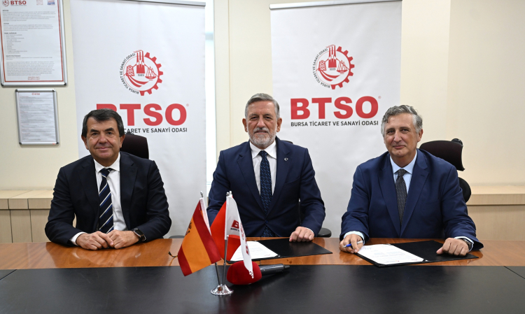 Bursa Ticaret ve Sanayi Odası (BTSO), uluslararası ekonomik iş birliklerine bir yenisini daha ekledi. Türk-İspanyol Sanayi ve Ticaret Odası Türkiye Delegesi Vicente Balbin ve beraberindeki heyet, BTSO Yönetim Kurulu’nu ziyaret ederek iki ülke arasındaki ticari ilişkileri güçlendirmeyi hedefleyen bir Mutabakat Zaptı (MoU) imzaladı.