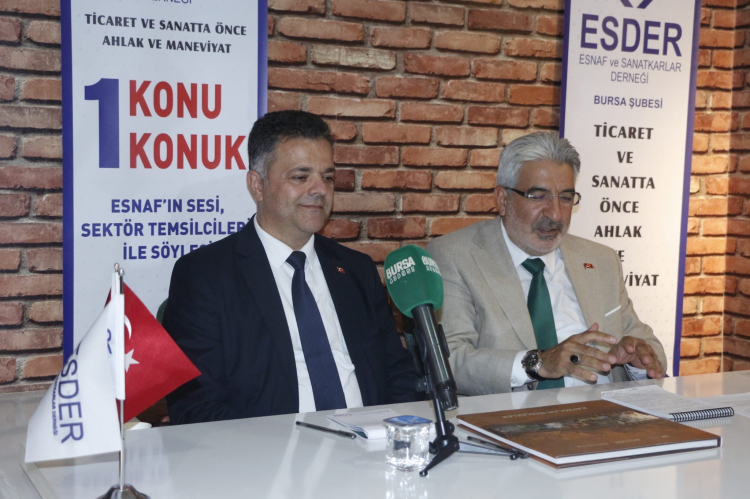 Esnaf ve Sanatkârlar Derneği (ESDER) Bursa Şubesi’nin geleneksel hale getirdiği “1 Konu 1 Konuk” programının bu haftaki konuğu, Bursa Matbaacılar Kırtasiyeciler Odası Başkanı Mehmet Akif Erol oldu. Programda esnaf ve sanatkârların güncel sorunları ele alınırken, hem Ahilik değerleri hem de kırtasiyeci esnafının yaşadığı zorluklar gündeme taşındı.