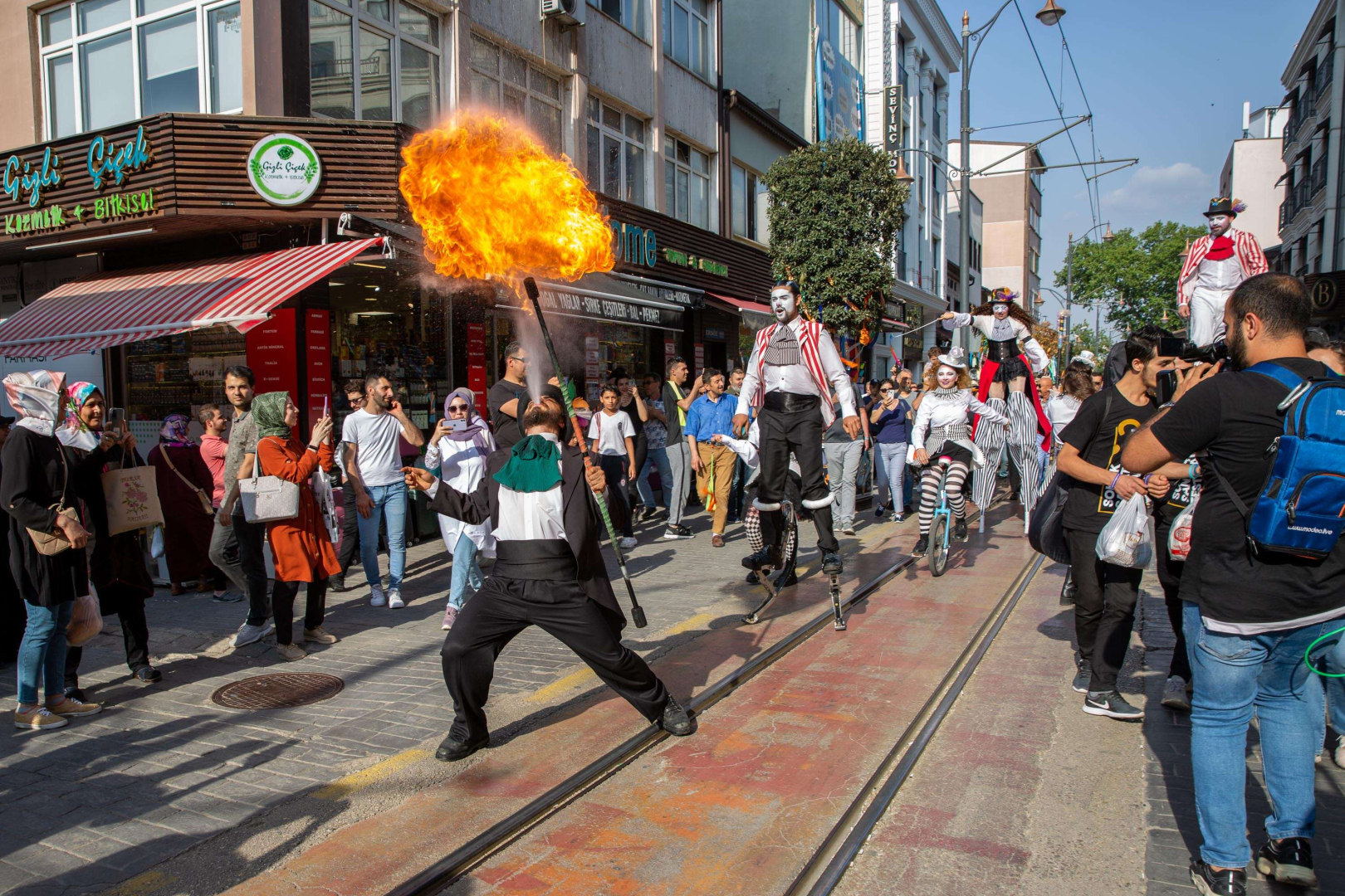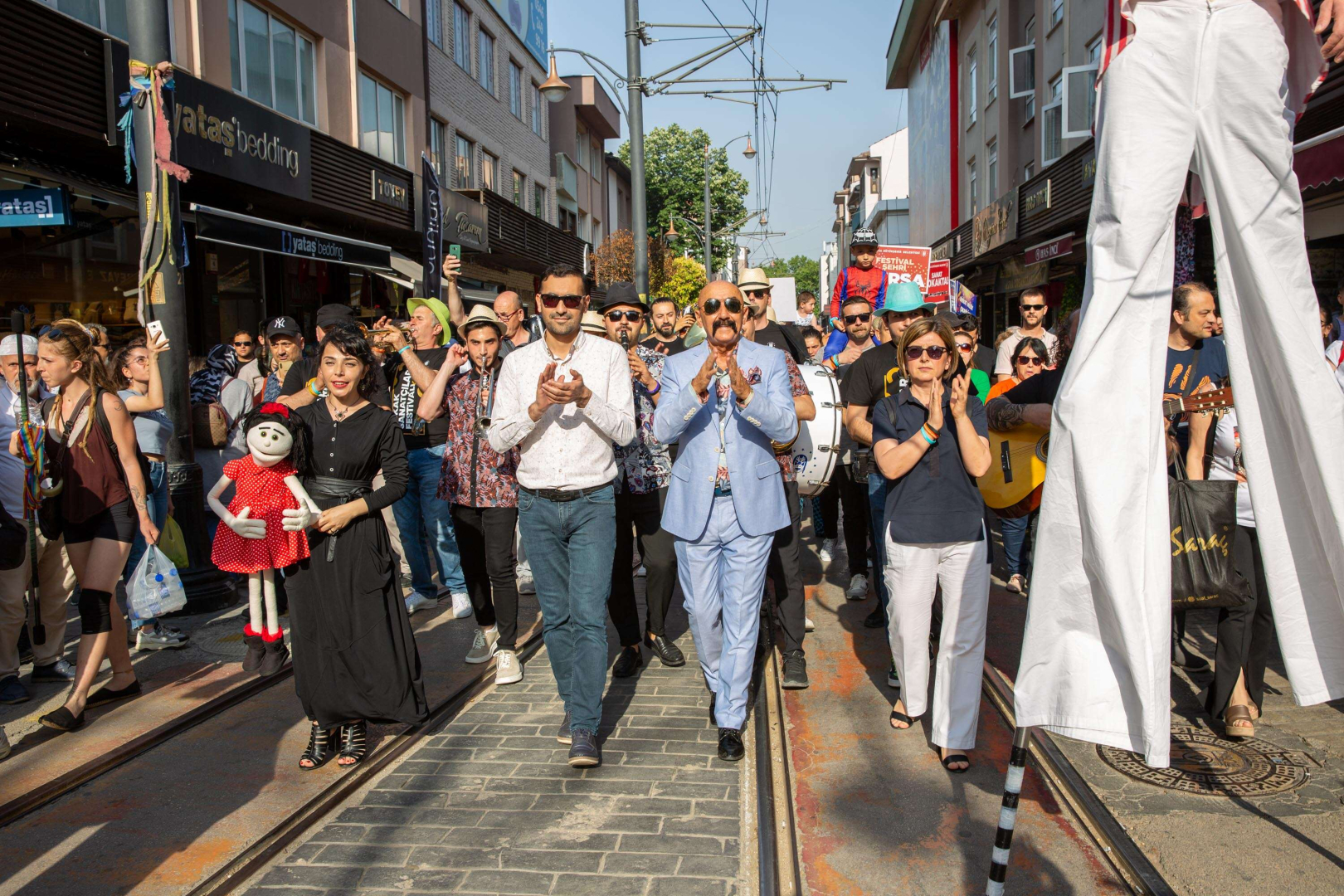 Kortej boyunca sanatçılar maharetlerini sergilerken, Büyükşehir Belediyesi Başkanvekili Fethi Yıldız da yürüyüş boyunca sanatçılarla sohbet etti.