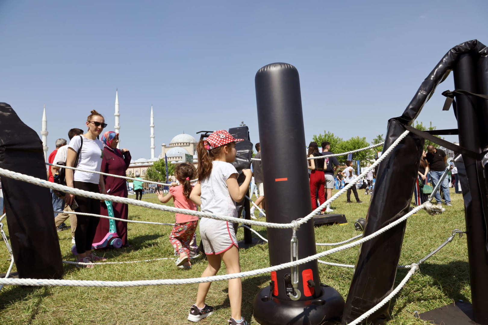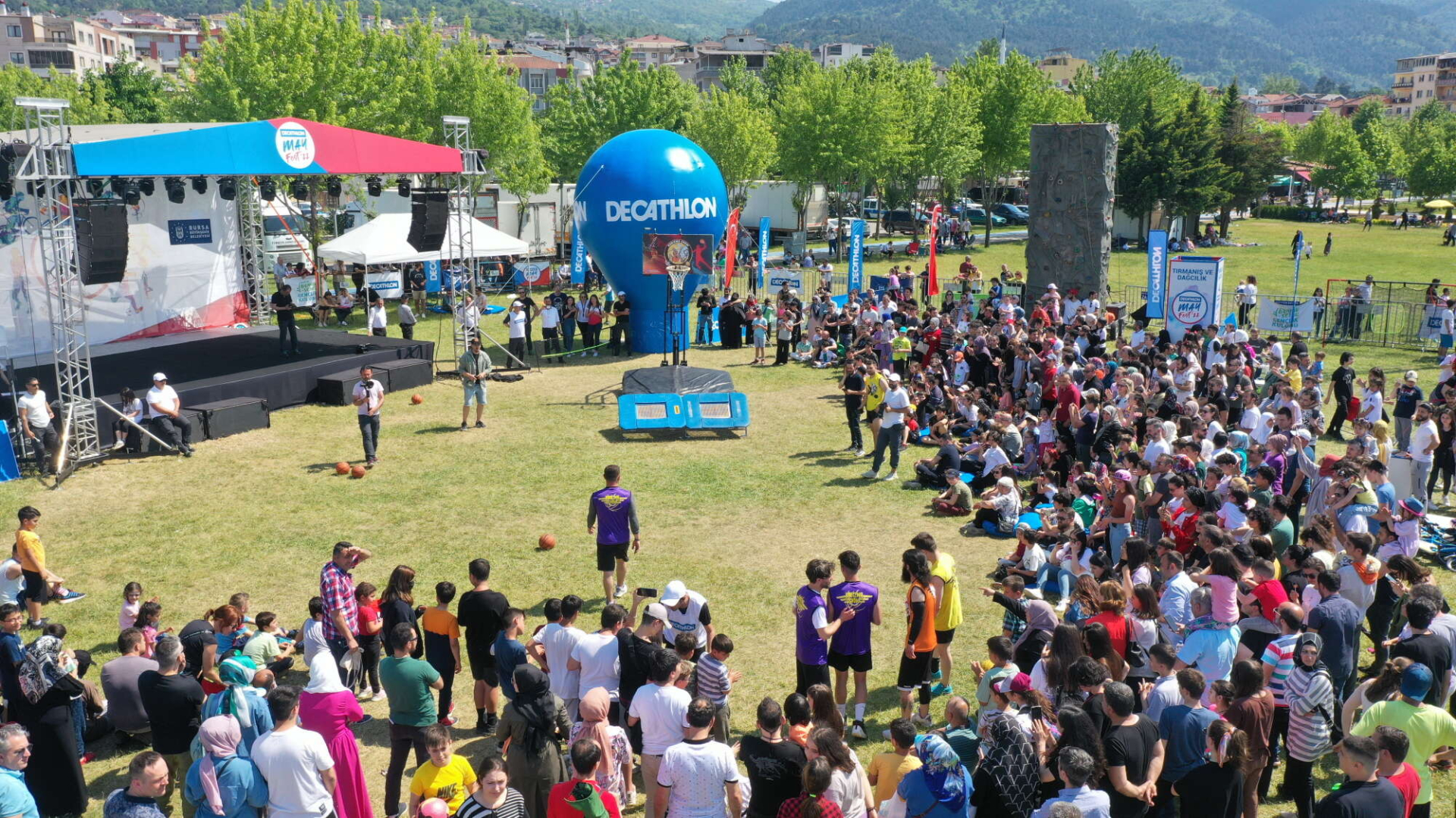 Decathlon işbirliğiyle yapılan etkinlikte park, futboldan basketbola, voleyboldan tenise, patenden kaykaya, kampçılıktan bisiklete, pilatesten yogaya, tırmanıştan okçuluğa kadar bir çok farklı spor parkuruna bölündü.