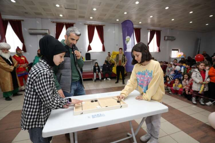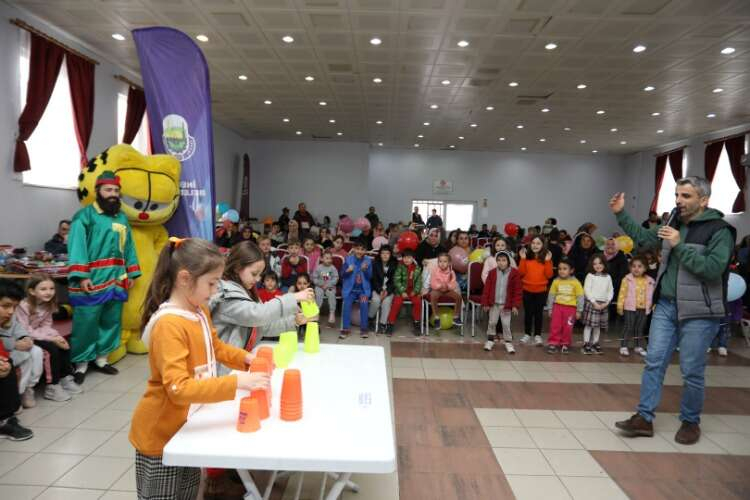 Yağış nedeniyle kapalı alanda yapılan Ramazan Mahalle Şenliklileri eğlencesine çocukların ve yetişkinlerin ilgisi yoğun oldu. Zaman zaman ebeveynler de yarışmalara dahil oldu.