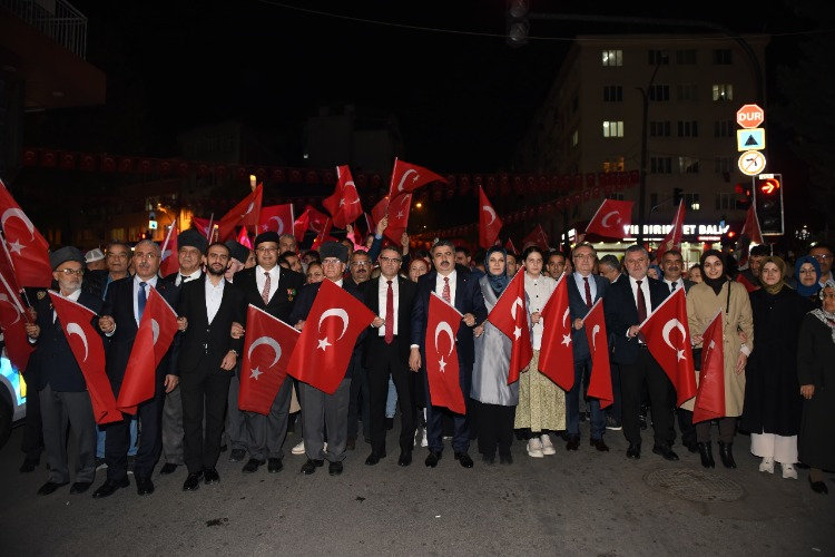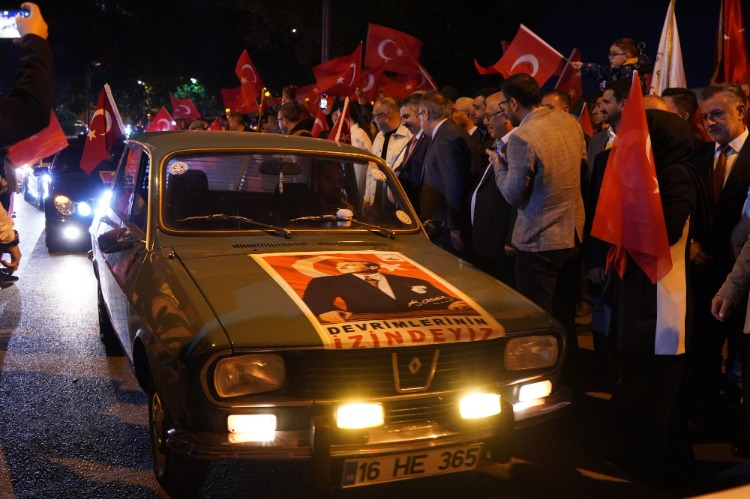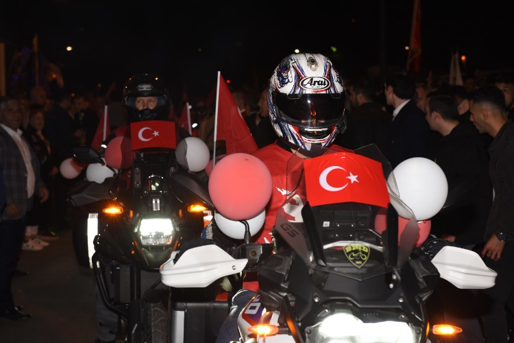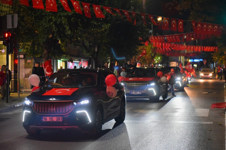 Kurtuluş Caddesi esnaf ziyareti ve bayrak dağıtımı ile başlayan kutlamalar kapsamında Karaağaç Mahallesi’nden Ahmet Taner Kışlalı Meydanı’na kadar klasik, modifiye ve yerli otomobilimiz TOGG araçları ve motor konvoyu düzenlenirken, Türk bayraklarıyla mehter ve kılıç kalkan eşliğinde yapılan yürüyüş, bayram coşkusunu ikiye katladı.