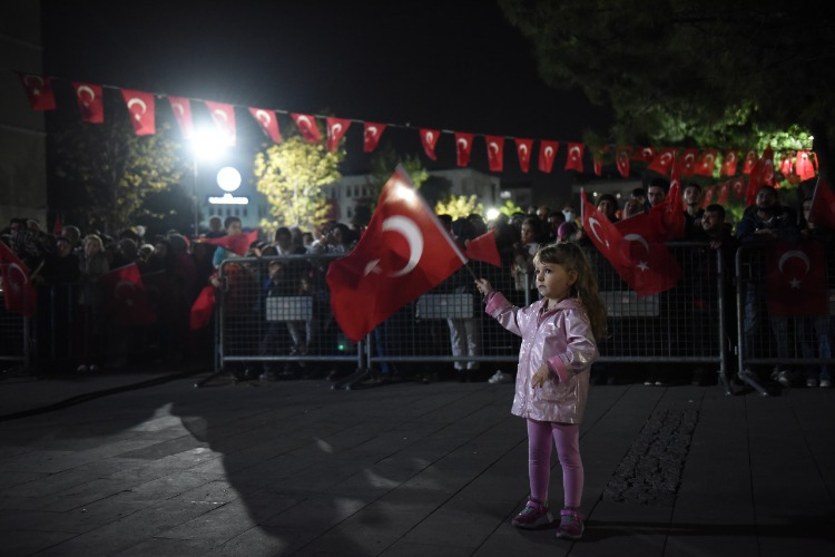 Bugün; tıpkı 101 yıl önceki ruh ve inançla, Türkiye Cumhuriyeti'ni sonsuza kadar yaşatacağımıza olan inancımızı bir kez daha haykırıyoruz. Bu toprakları vatan yapan başta Cumhuriyetimizin kurucusu Gazi Mustafa Kemal Atatürk olmak üzere vatanın bölünmez bütünlüğünü, milletin huzurunu sağlayan ve bu ulvi gaye için toprağa düşerek şehitlik mertebesine ulaşan bütün şehitlerimizi rahmetle, gazilerimizi minnetle anıyorum” dedi.