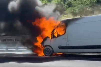 Anadolu Otoyolu’nda seyir halindeki minibüs yandı