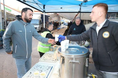 Dilovası’nda Büyükşehir’in sıcak çorba ikramı ile güne başlayan pazarcı esnafının hem içleri ısındı, hem de yüzleri güldü