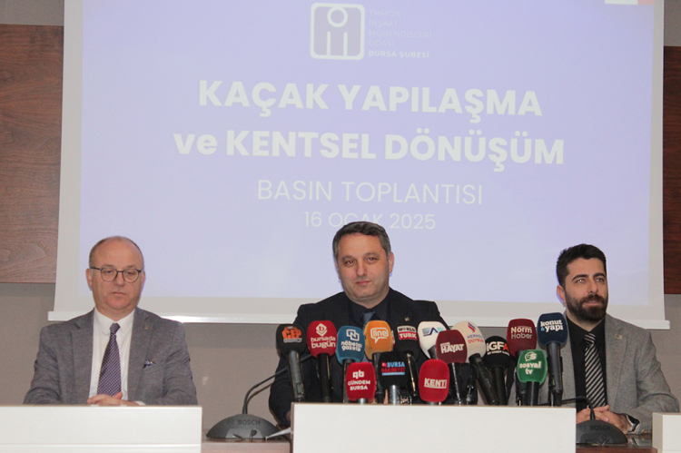 İnşaat Mühendisleri Odası (İMO) Bursa Şubesi Yönetim Kurulu Başkanı Serdar Atilla Erdem, kaçak yapılaşma ve kentsel dönüşüm sorunları ile ilgili gerçekleştirilen basın toplantısında Bursa’da kaçak yapılaşma ile mücadelenin yeterli olmadığını belirterek, “İmarsız alanlarımıza yapılan kaçak yapılaşma bir tarafa, imarlı olan alanlardaki ruhsatlı sanayi ve konutlarımızın da kaçak olmaya evrilmiş ve bunların da kabul edilir olmuş bir Bursa’da hangi kaçak yapı ile mücadeleden bahsediyoruz?” dedi.