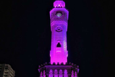 İzmir Saat Kulesi 'mor'a büründü