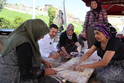 NEVŞEHİR (İGFA) - Türkiye’de sosyal projeleri ile birçok belediyeye örnek olan Nevşehir Belediyesi bu kez belediye Başkanı Rasim Arı öncülüğünde ihtiyaç sahibi aileler ve öğrenciler için gönüllü kadınları bir araya getirdi. Proje kapsamında sabah erken saatlerde Kayaşehir’de bir araya gelen çok sayıda gönüllü kadın açtıkları hamurlarla erişte keserek gözleme yaptı. Yapılan eriştiler şehirdeki ihtiyaç sahibi ailelere dağıtılırken gözlemeler ise geliri ihtiyaç sahibi ailelerin çocukları için yapılacak olan kırtasiye yardımında kullanılmak üzere satıldı.