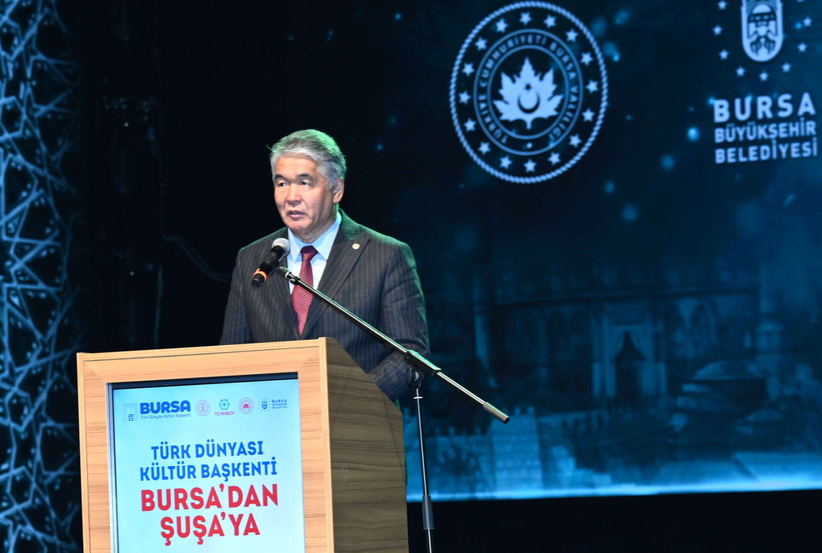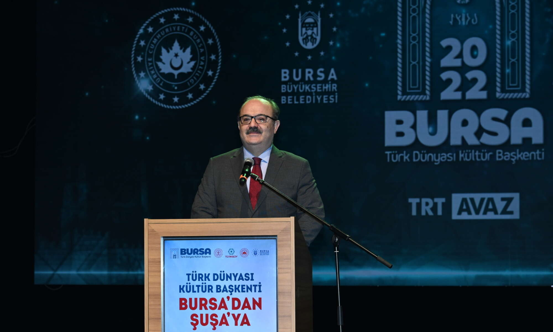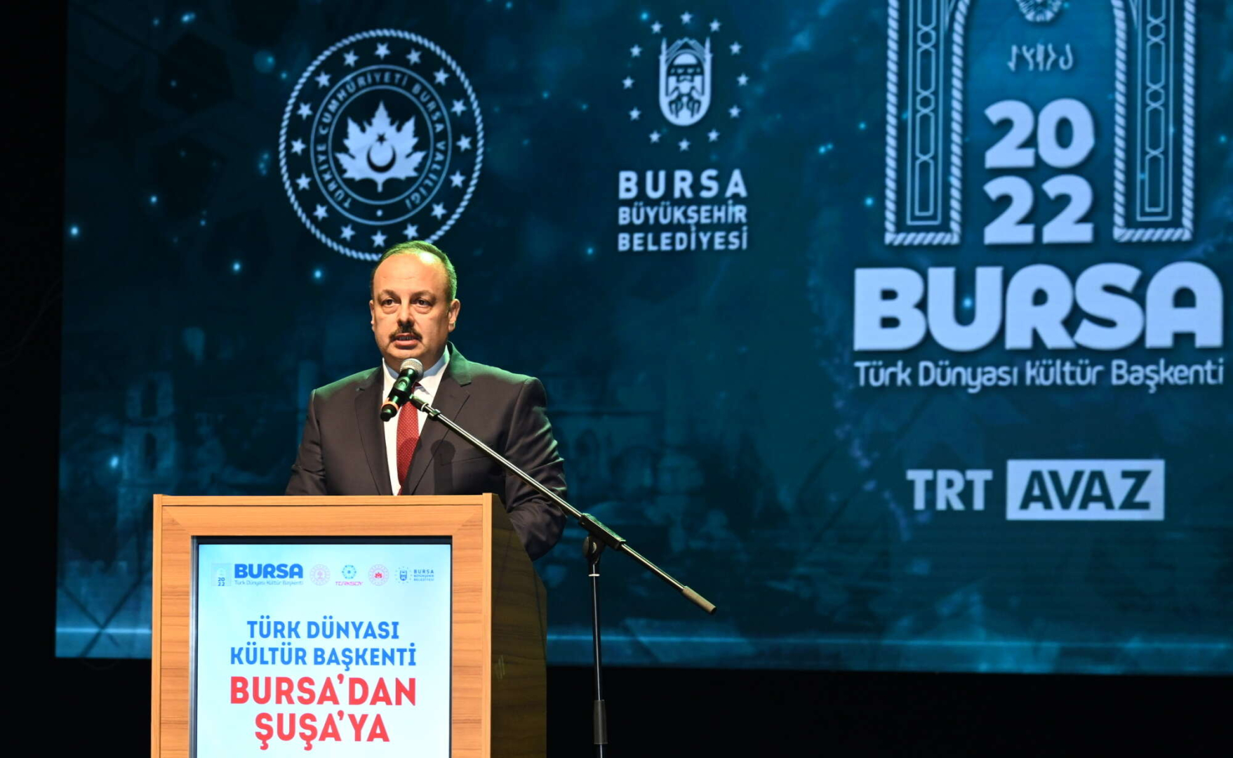 Bursa Valisi Yakup Canbolat da Türk dünyasına başkentlik yapmanın, ortak mirasa sahip çıkmanın ve binlerce yıllık kadim dostları, kardeşleri Bursa'da ağırlamanın her zaman nasip olmayacak büyük bir şeref olduğunu vurguladı. Birçok medeniyete ev sahipliği yapan, İpek yolunun önemli güzergahlarından Bursa'nın kadim bir tecrübeye sahip olduğunu ifade eden Canbolat, "Biz bu tecrübeye her zaman güvendik. Bu ulu şehir bizi hiç yanıltmadı. Tüm Türk dünyasına başkentlik yapmak babayiğitlik isterdi. Şehrimiz bunu gösterdi. Alnımızın akıyla bu görevi nihayete erdirmiş olduk. Verdiğimiz sözü tutmuş olduk. Hem vazifemizi en güzel şekilde ifa ettiğimiz için hem de başka bir babayiğide teslim ettiğimiz için mutluyuz. Şuşa, emanetin hayırlı başkentliğin kutlu olsun" dedi.