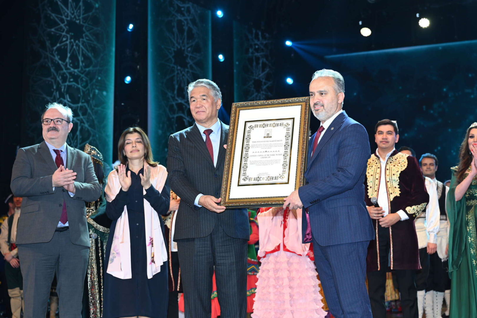 Konuşmaların ardından TÜRKSOY üyesi ülkelerden gelen sanatçıların halk dansları ve konserleriyle renklenen gecede Bursa Büyükşehir Belediye Başkanı Alinur Aktaş, Azerbaycan Cumhurbaşkanlığı Şuşa Özel Temsilcisi Aydın Kerimov'a Türk Dünyası Kültür Başkenti sembolünü takdim etti.