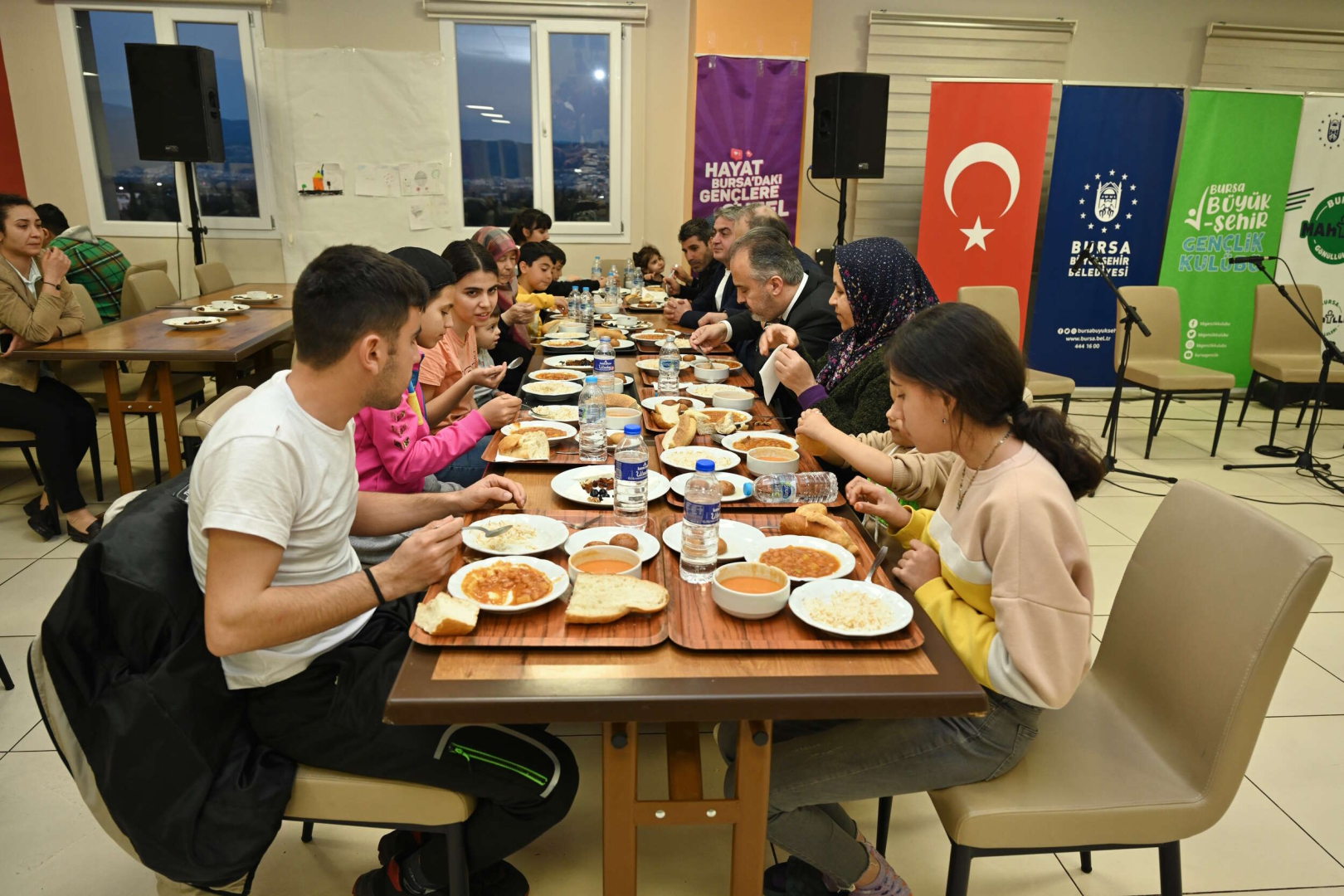Bursa Büyükşehir Belediye Başkanı Alinur Aktaş, 11 ayın sultanı Ramazan ayının manevi iklimini Bursa’da geçiren depremzedelerle birlikte iftar sofrasında buluştu. Emirsultan KYK yurdundaki iftar programına 350 depremzenin yanı sıra Gençlik ve Spor Bakanlığı Hukuk Hizmetleri Genel Müdür Yardımcısı Ahmet Bensiz, Gençlik ve Spor Bursa İl Müdürü Rahmi Aksoy da katıldı. İftar öncesinde depremzedelerle sohbet eden Başkan Aktaş, vatandaşlara kendi elleriyle yemek ikramında bulundu.