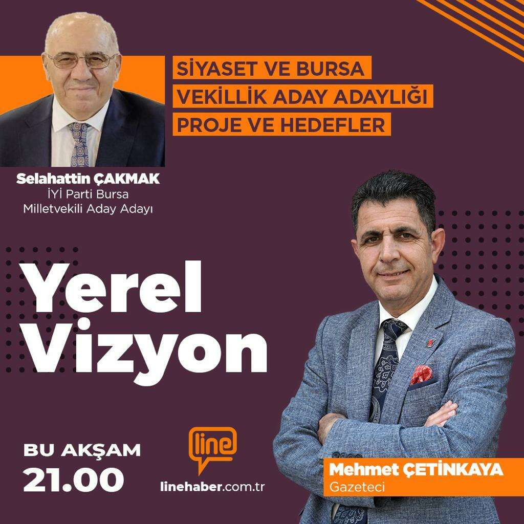 İYİ Parti Bursa milletvekili aday adayı Selahattin Çakmak’ın öne çıkan projelerinin detaylı olarak aktarılacağı Yerel Vizyon, bu akşam saat 21.00’de Mehmet Çetinkaya’nın sunumuyla Line TV'de.
